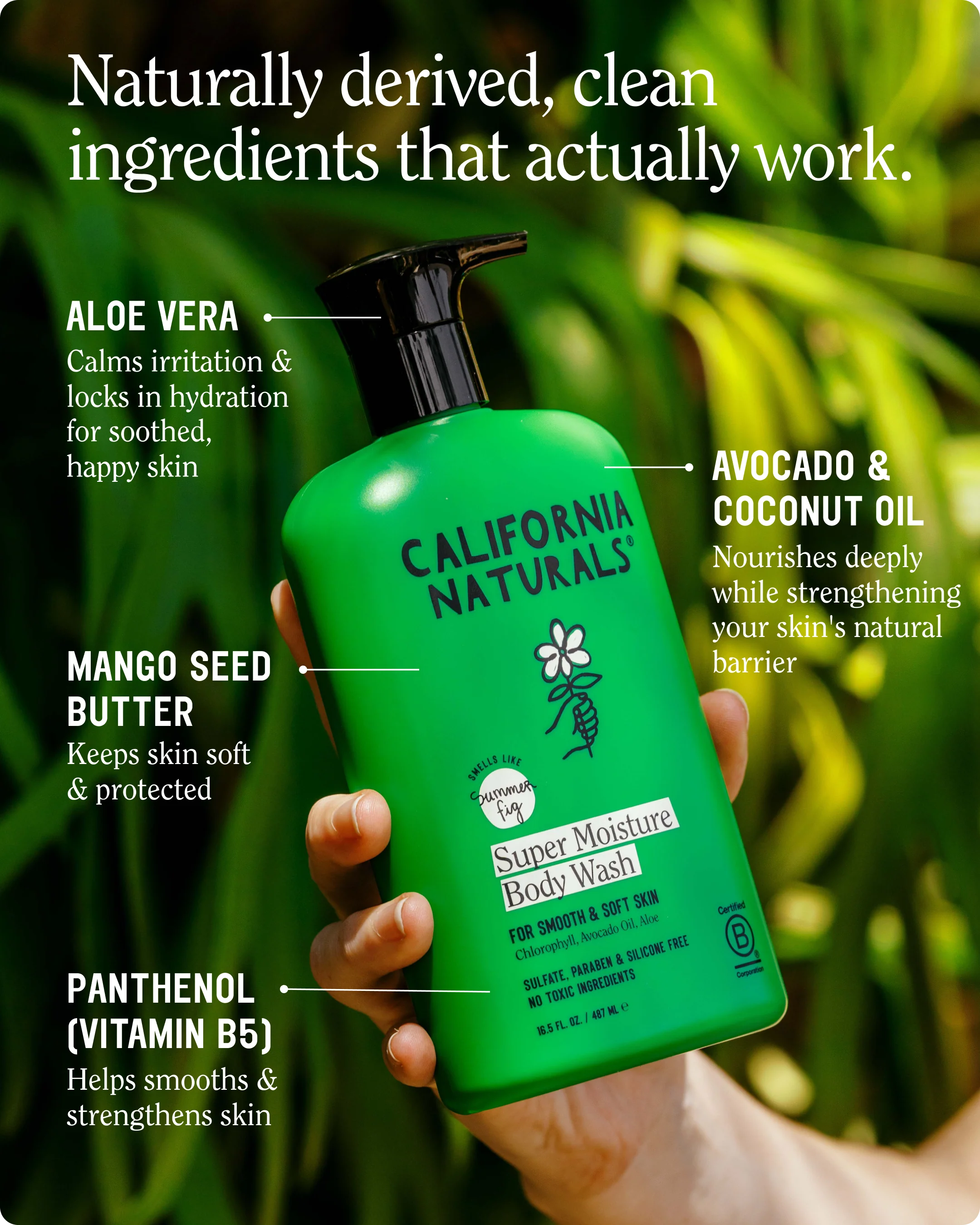 - Aloe Vera - Soothes, hydrates, and helps to reduce inflammation, calming the skin and promoting moisture retention